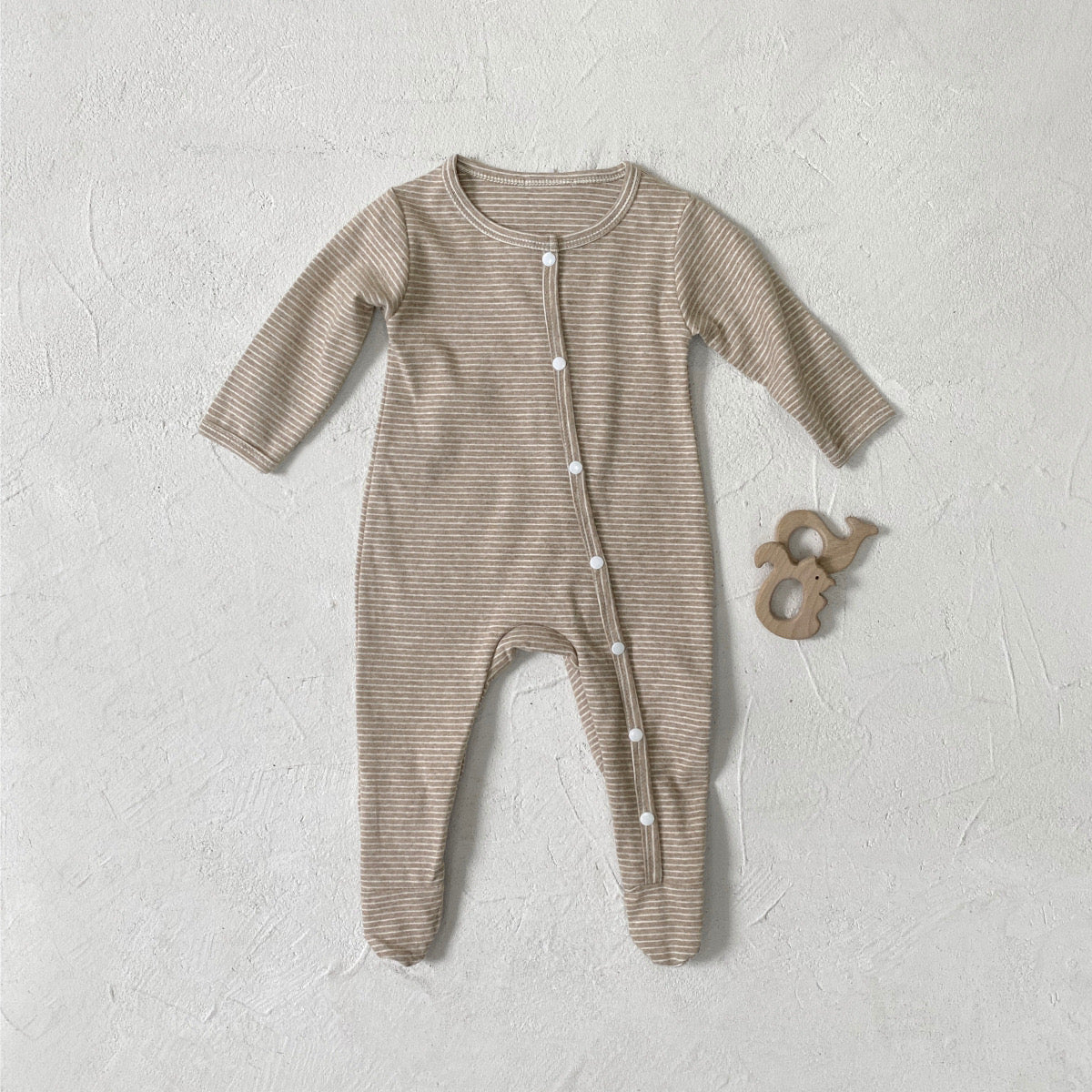 - Cute beige stripe design adds a touch of style to your baby's sleepwear